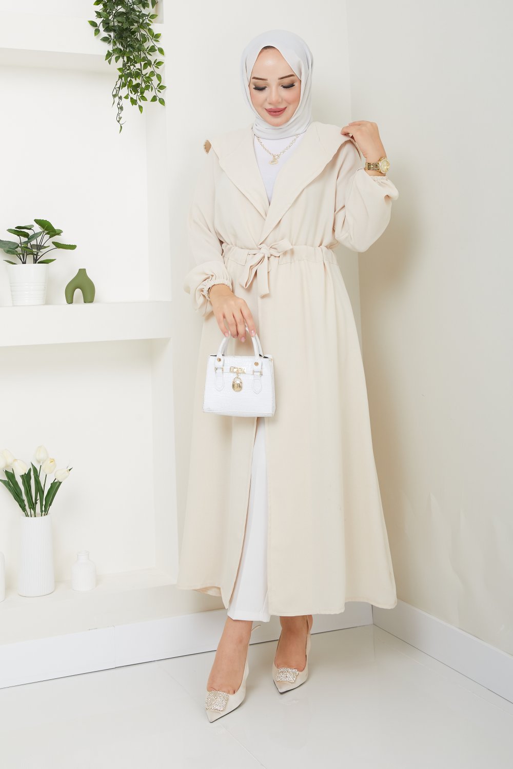 • Düz Trrençkot Krem